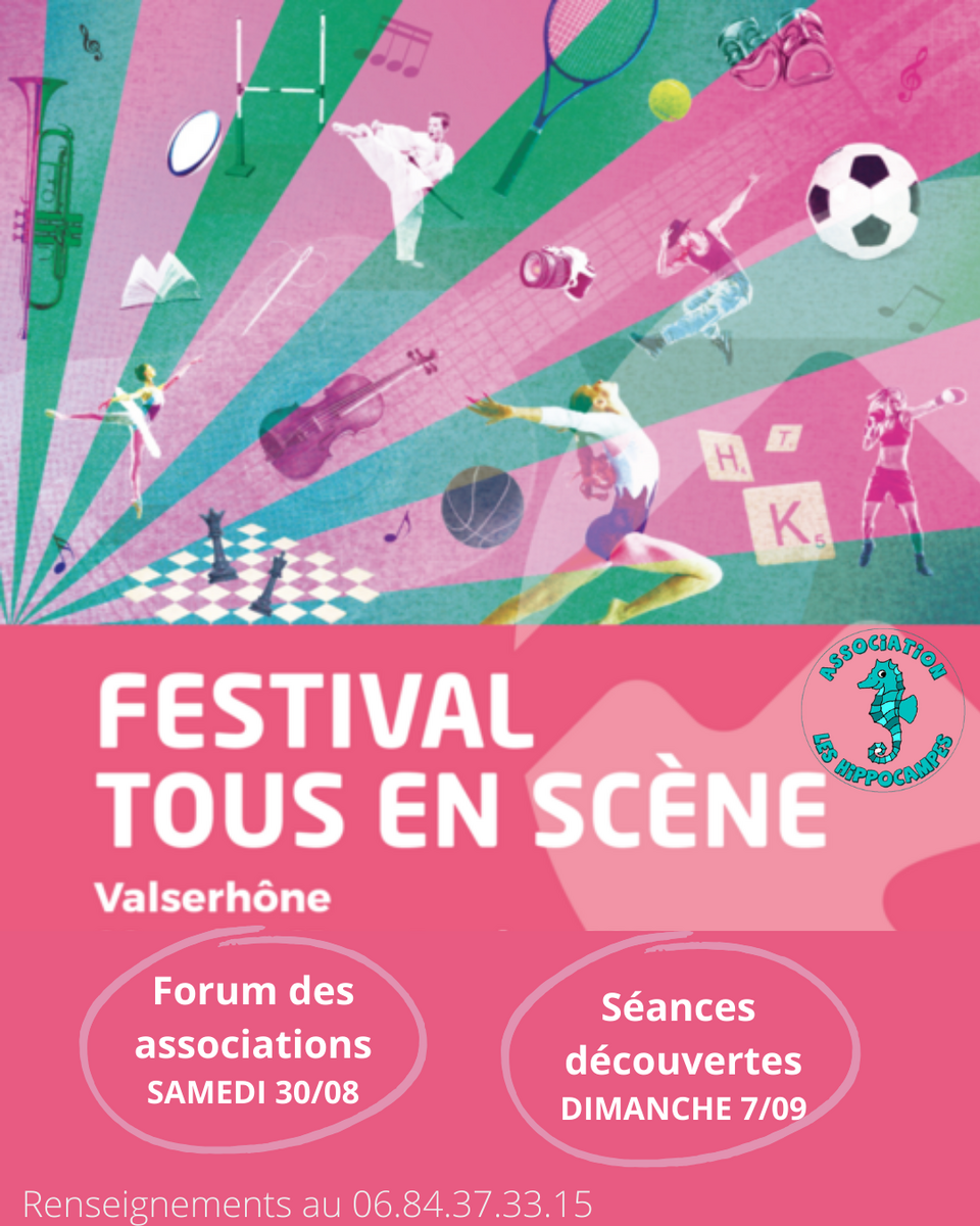 La rentrée approche ! Premiers rendez-vous pour le festival tous en scène : le forum des associations et une matinée portes ouvertes. Les inscriptions seront bientôt en ligne. N'oubliez pas de demander un certificat médical à votre médecin.